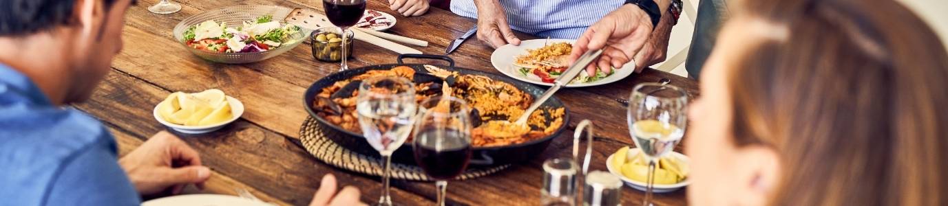 Paella Set mit Bomba Reis, Garrofons, Olivenöl und Gewürze