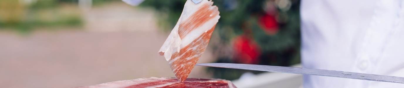 The 100% acorn-fed Iberian pata negra ham is produced and cured in a completely traditional way in natural drying sheds for a minimum of 36 months. It is almost unanimously the star product of Spanish gastronomy, being the highest quality ham and therefore the most expensive. It has a very aromatic, powerful umami flavour.